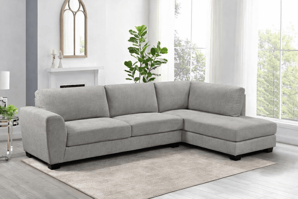 Buy the Loren Light grey corner sofa in one of our furniture stores or online. Elevate your living space with this Sofa, perfect blend of style, comfort and versatility. This modern sofa is upholstered in high-quality, soft fabric, offering a luxurious feel that complements any decor. Stretch out and enjoy your down time in comfort and style at an affordable price with the Loren couch.