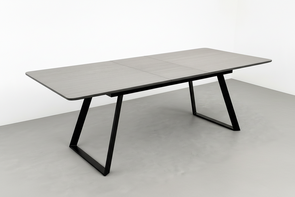 Buy the Shelton extendable dining table in one of our furniture stores or online. Combine style, functionality, and modern design with the Shelton Extendable Dining Table. Perfect for everyday dining or entertaining, this table features a durable solid veneer top and sleek metal legs, with a convenient extendable design to accommodate more guests when needed. Easily expand the table from 1.6 m to 2 m, providing extra seating for family gatherings or entertaining guests.