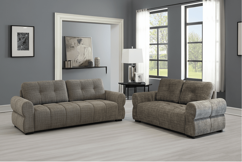 Buy the Kinloch Fabric Lounge Suite in one of our furniture stores or online. Elevate your living space with the sleek lines and unparalleled comfort of our 3+2 Modern Contemporary Sofa set. Bring contemporary comfort into your living space with the Kinloch Lounge Suite. Designed with sleek, modern lines and generously sized seating, this lounge suite offers the perfect balance of style and relaxation. Upholstered in durable polyester fabric, it is easy to maintain while providing a soft, inviting feel.